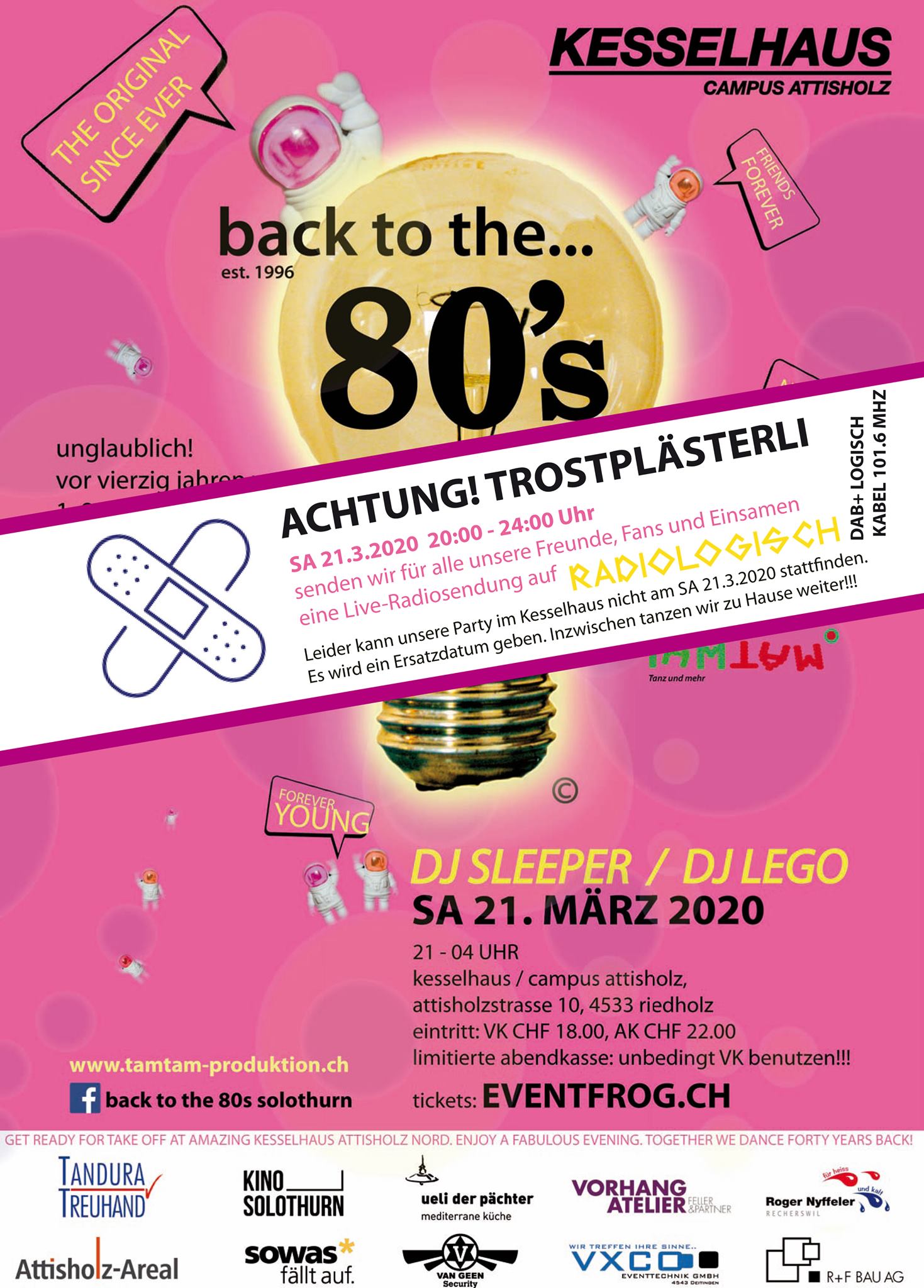 Als sich im November 2019 ein paar hundert tanzlustige Menschen an der „back to the 80‘s“ Party im Attisholz trafen um eine Nacht durchtanzen, wurde das Raum-Zeit-Kontinuum unterbrochen… Vierzig Jahre in einer Sekunde…